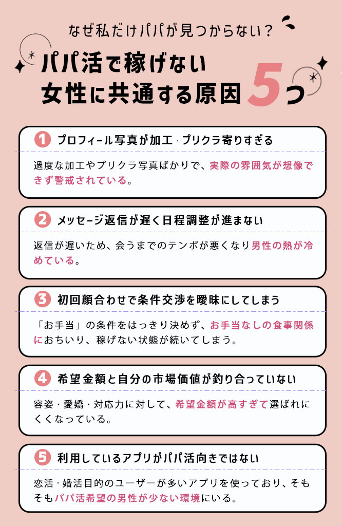 なぜ私だけパパが見つからない?パパ活で稼げない女性に共通する5つの原因